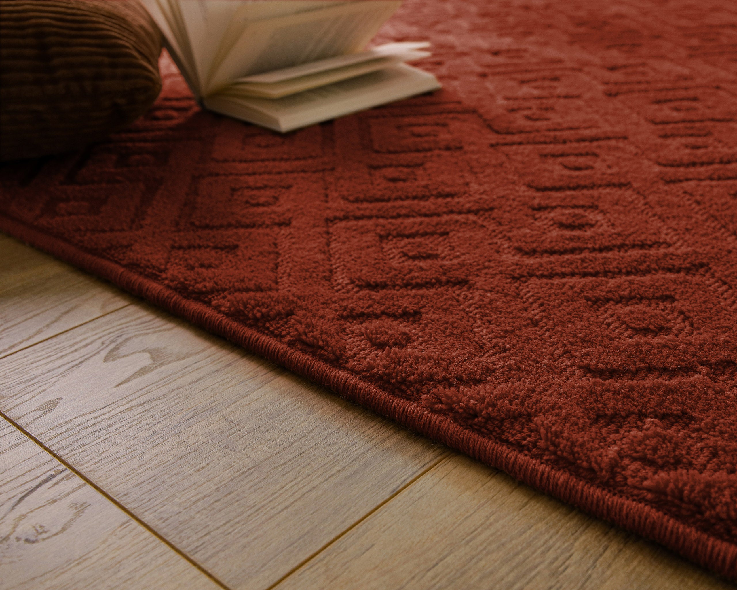 Kurzflor Teppich aus Schurwolle Kamin Rot "Castello TWO" WECONhome