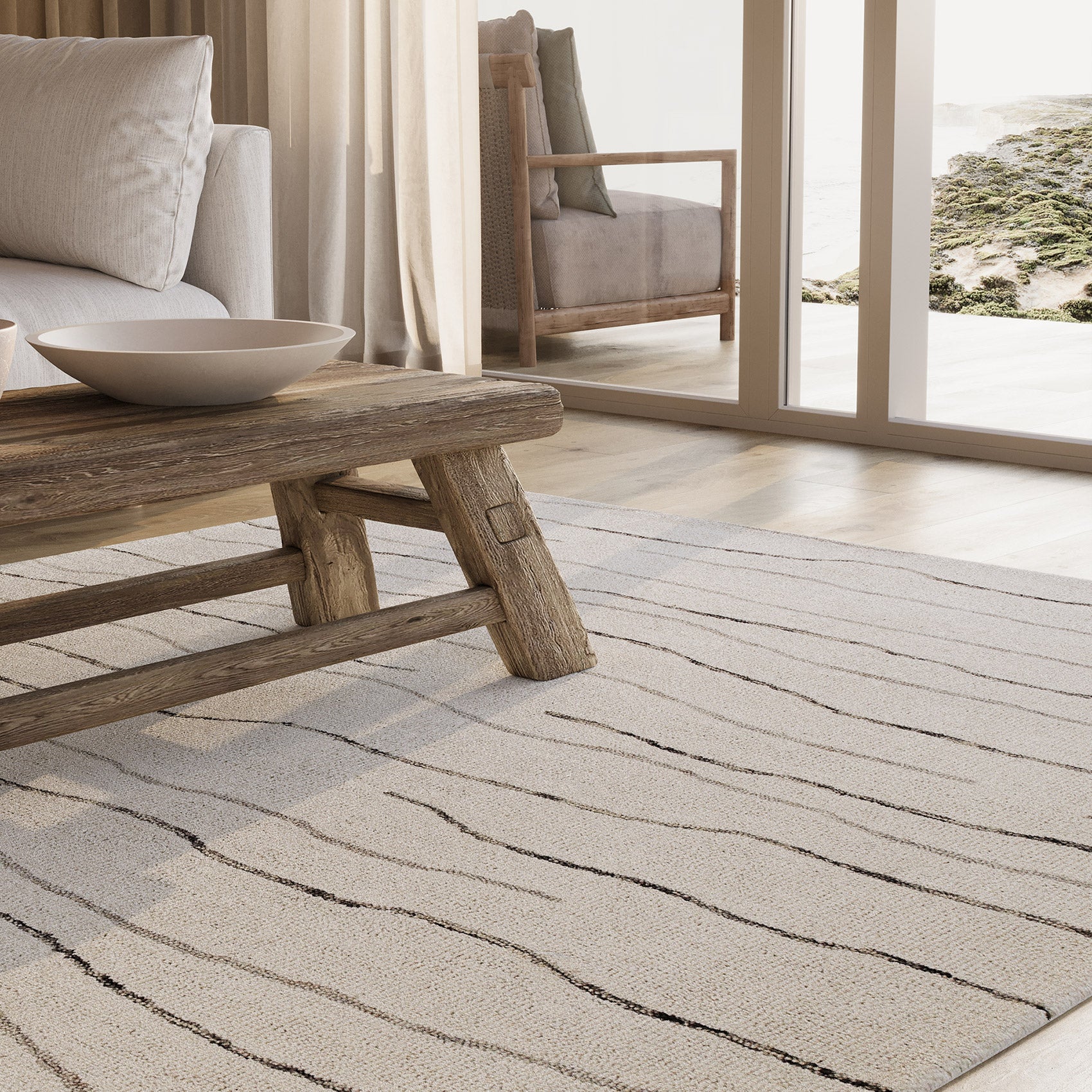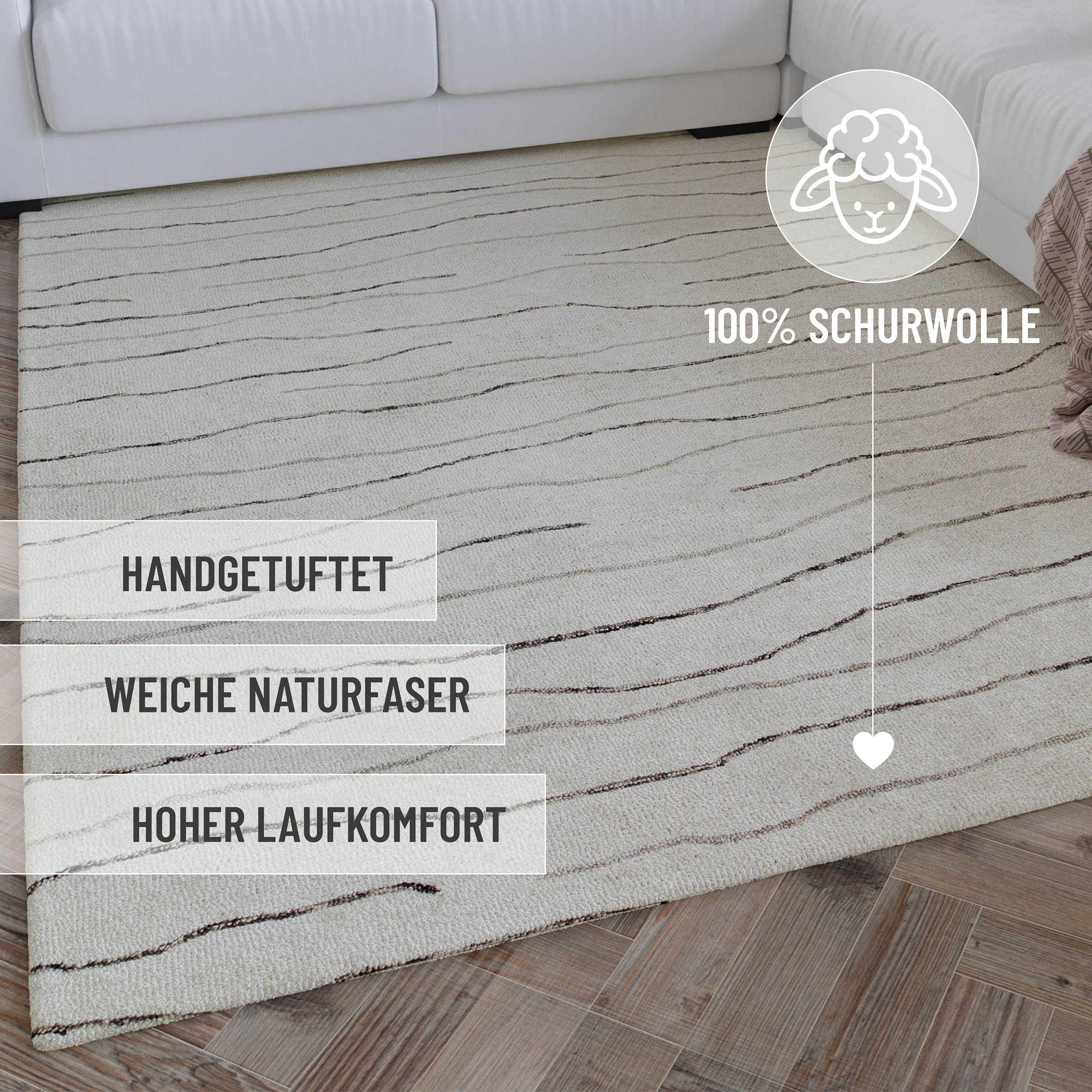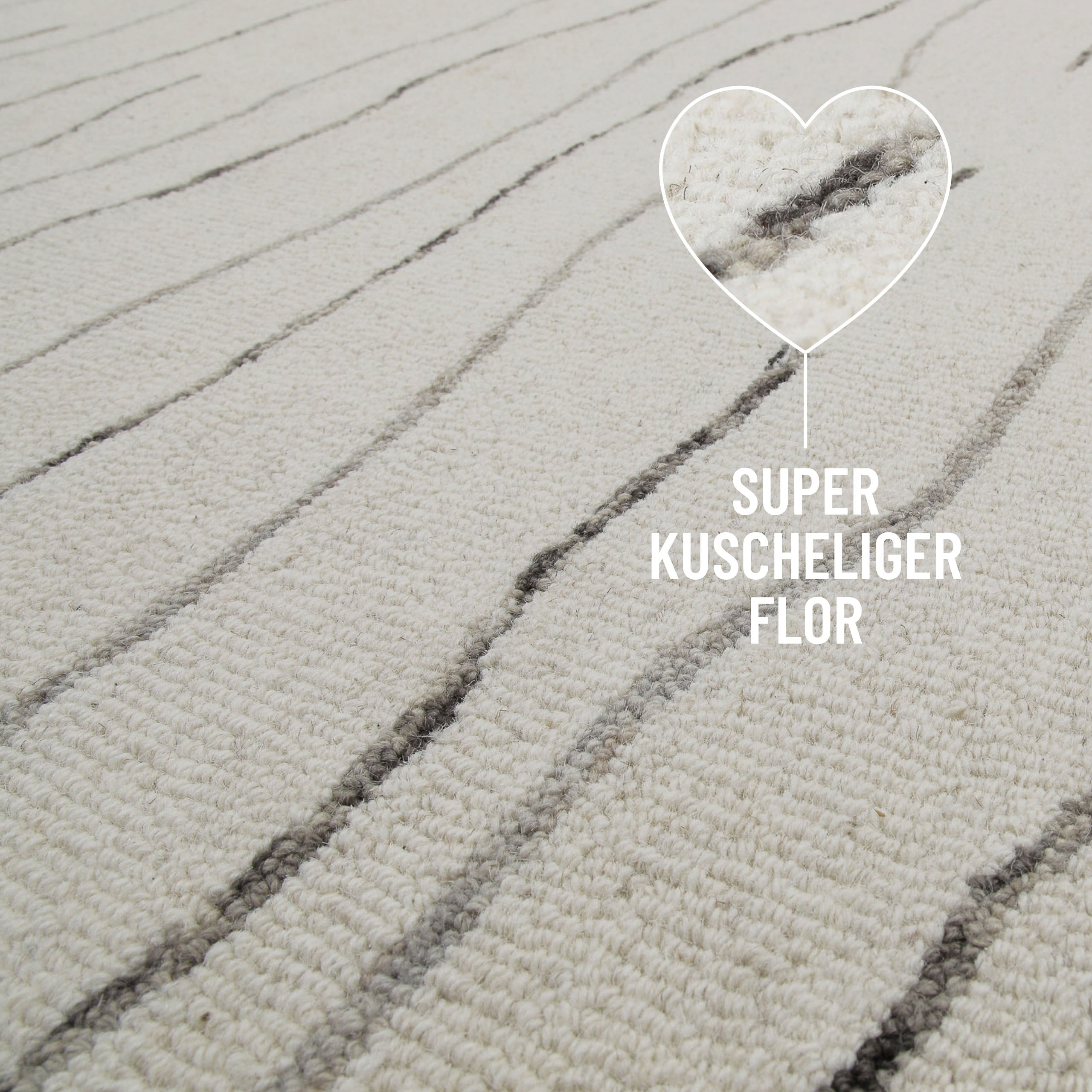 Kurzflor Teppich Creme Weiß aus Schurwolle "Hamptons ELEVEN" WECONhome
