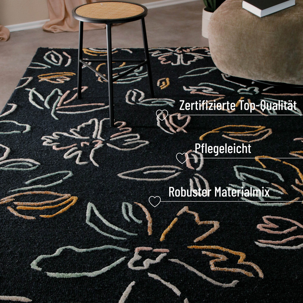 Vee ist ein florales Flüstern – weich gezeichnet und fein gesetzt. Die stilisierten Blüten und Blätter wirken wie locker hingeworfene Skizzen – leicht, beweglich, fast schwebend. Das dezente Spiel aus Linien und Farben verleiht Vee eine entspannte Eleganz, die sich in jeden Raum einfügt, ohne zu dominieren. Gefertigt aus 75 % Schurwolle und 25 % Viskose, vereint Vee das Beste aus Naturfasern: Struktur, Glanz und angenehme Weichheit. Die Florhöhe liegt bei 10mm – perfekt für ein sanftes Laufgefühl und dennoch stabil genug für den Alltag. Handgetuftet, OEKO-TEX® STANDARD 100 und GoodWeave zertifiziert – ein Teppich mit Haltung und Handschrift.