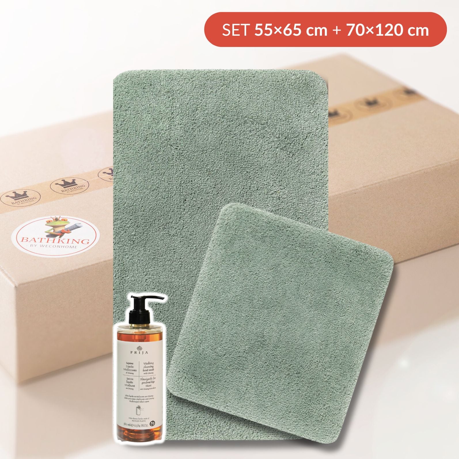 55 × 65 cm + 70 × 120 cm Badematte + BathKing Flüssigseife (380 ml)