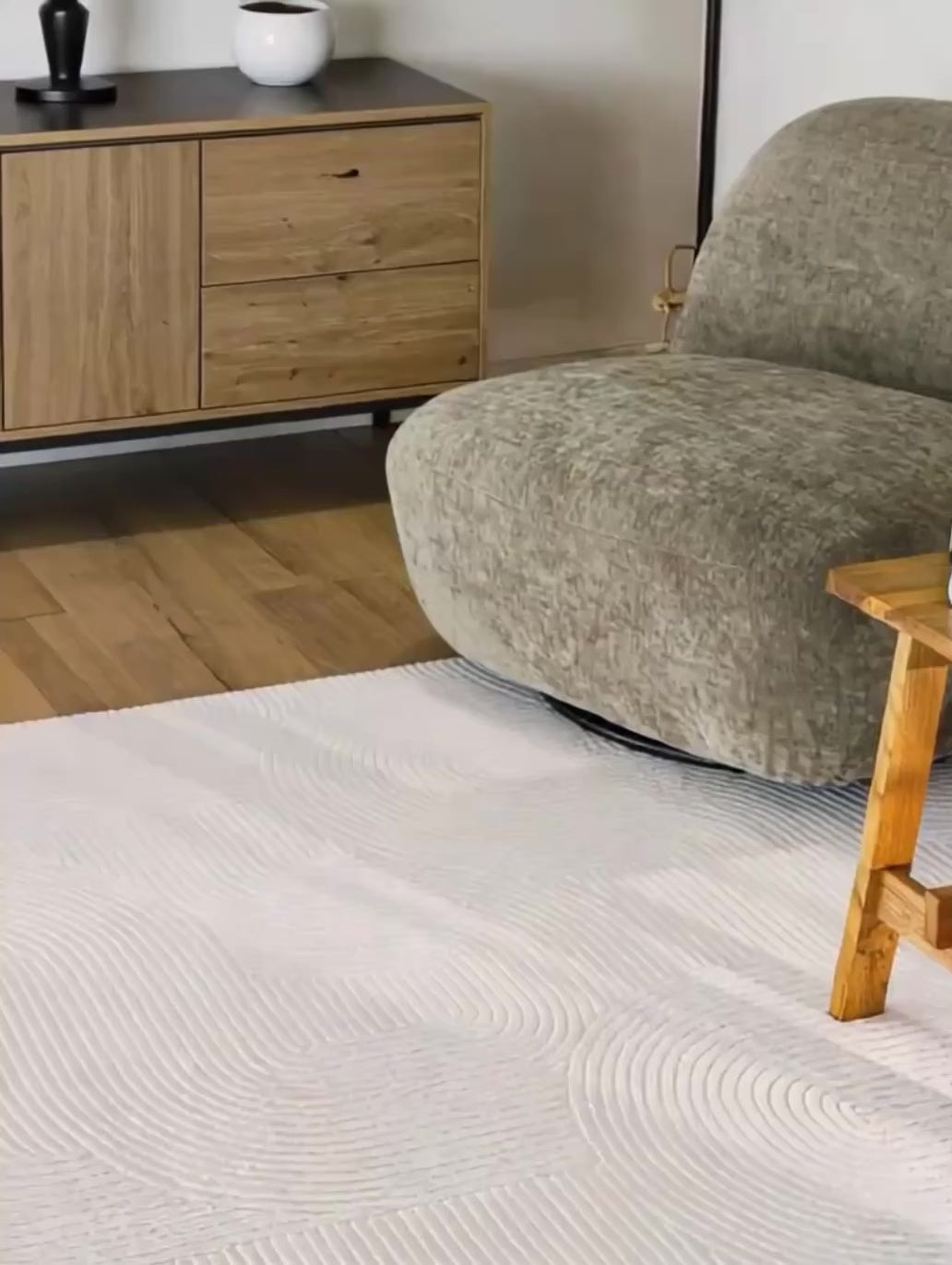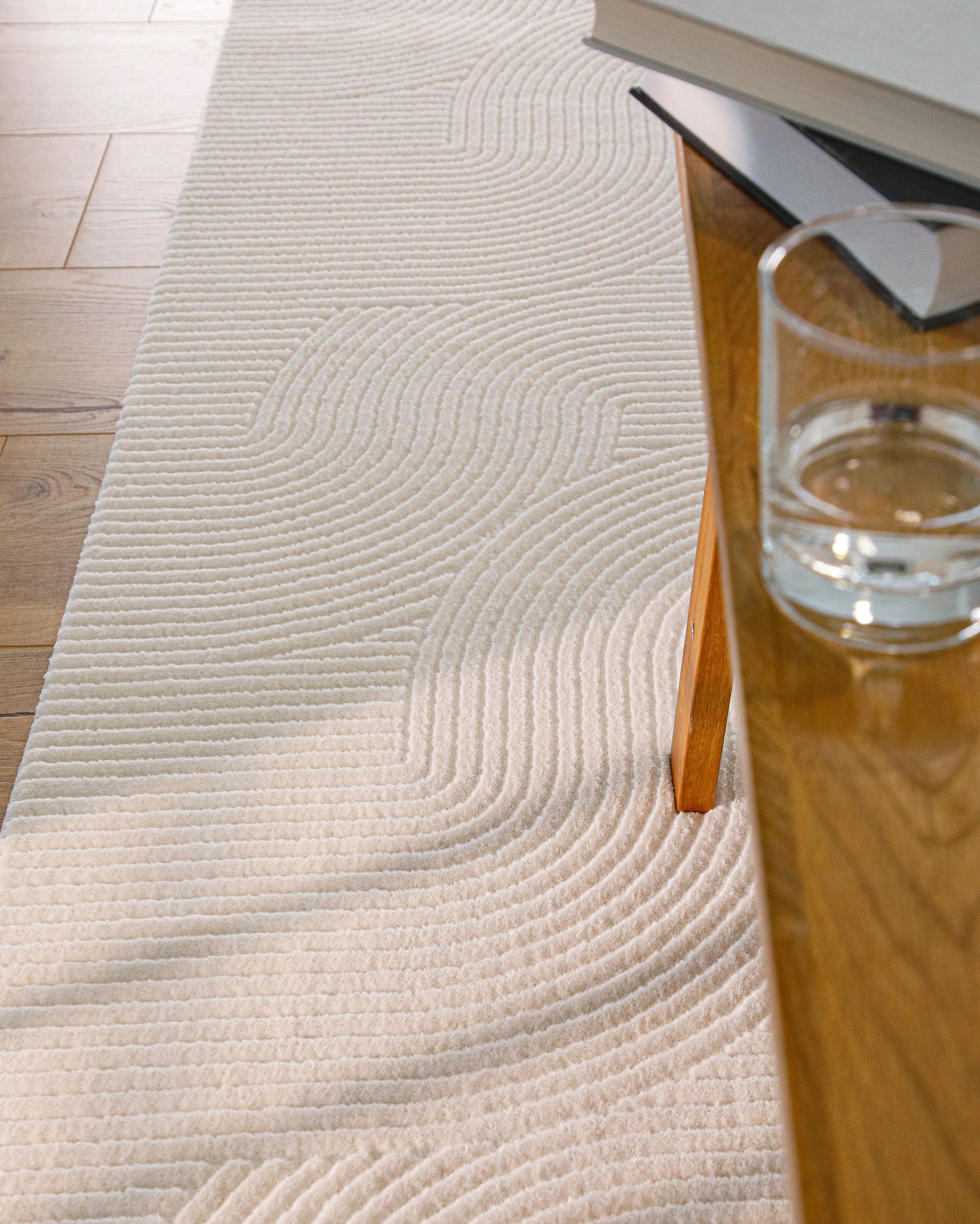 Manchmal braucht ein Raum kein lautes Muster, sondern eine starke Struktur. Nuuk Arc spielt genau damit. Die klaren, weich verlaufenden Bögen entstehen durch einen Hoch-Tief-Effekt und geben dem Teppich eine besondere Tiefe. Die getuftete Verarbeitung sorgt für eine gleichmäßige, hochwertige Oberfläche, die dem Raum eine ruhige, Architektonische Note verleiht. Gefertigt aus hochwertiger Synthetikfaser ist der Teppich robust, pflegeleicht und sogar waschbar – ein echtes Plus im Alltag. Der integrierte Antirutschrücken gibt zusätzliche Sicherheit und macht ihn sofort einsatzbereit. Nuuk Arc ist kein Teppich, der nur liegt. Er strukturiert, verbindet und schafft Atmosphäre – dezent, modern und mit spürbarer Qualität.